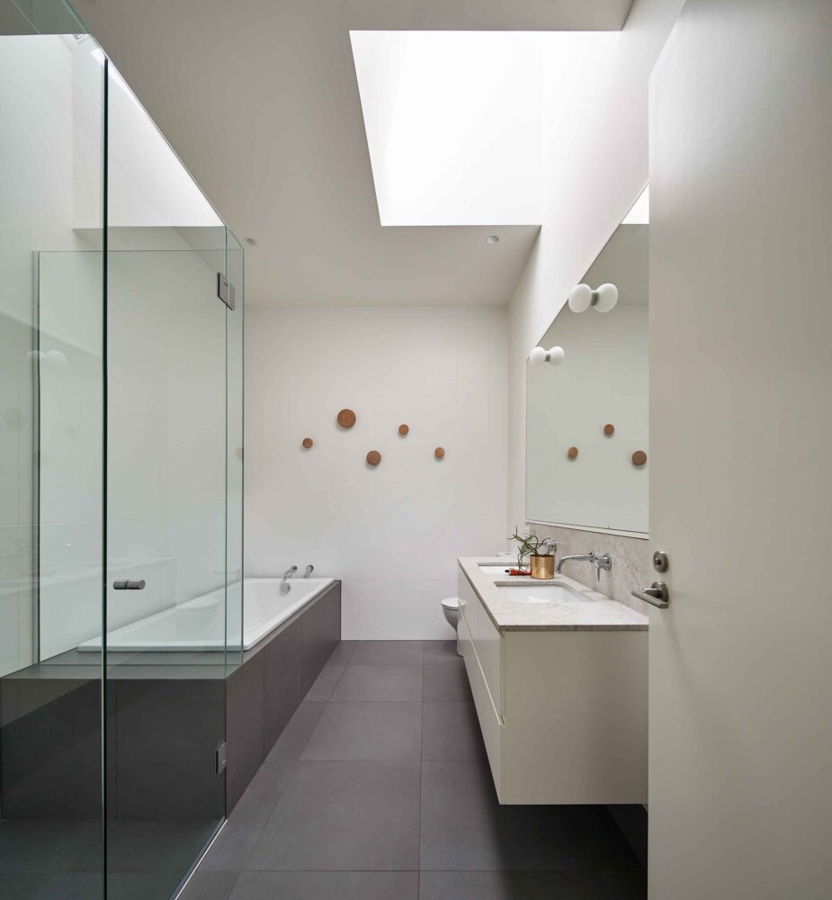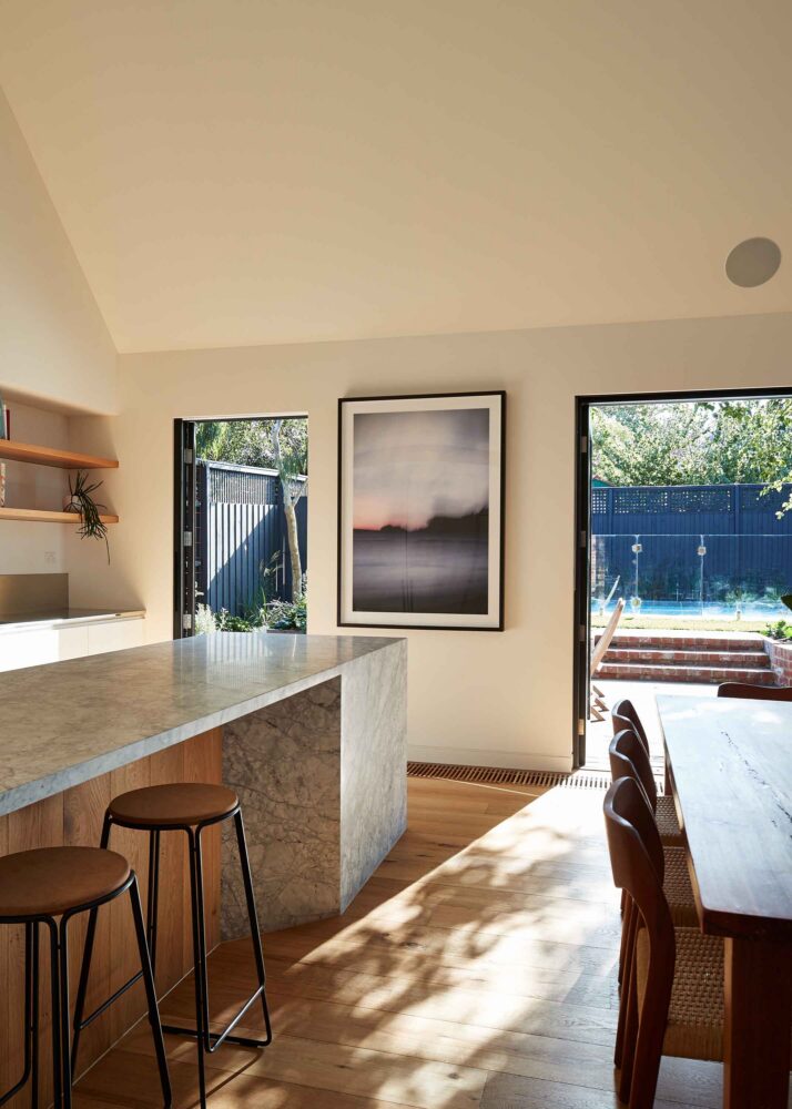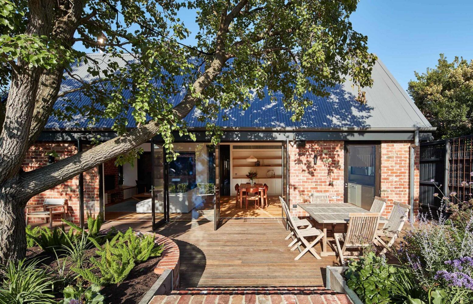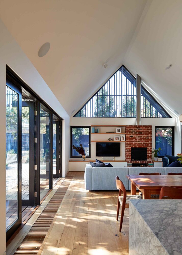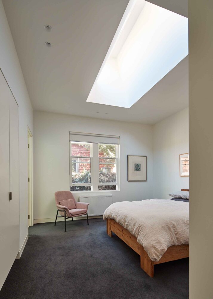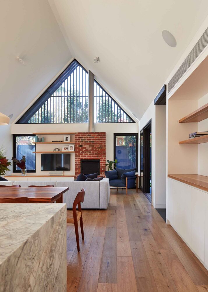 Construction is of single skin brick veneer, using all recycled bricks to ensure a seamless transition between old and new. Floorboards are engineered by Royal Oak floors, with hydronic heating panels concealed beneath the floorboards in the main living space creatively to maximise the space, while air-conditioners are concealed behind grilles in purpose-built bulkheads which are aesthetically pleasing and complement the other finishes in the space.