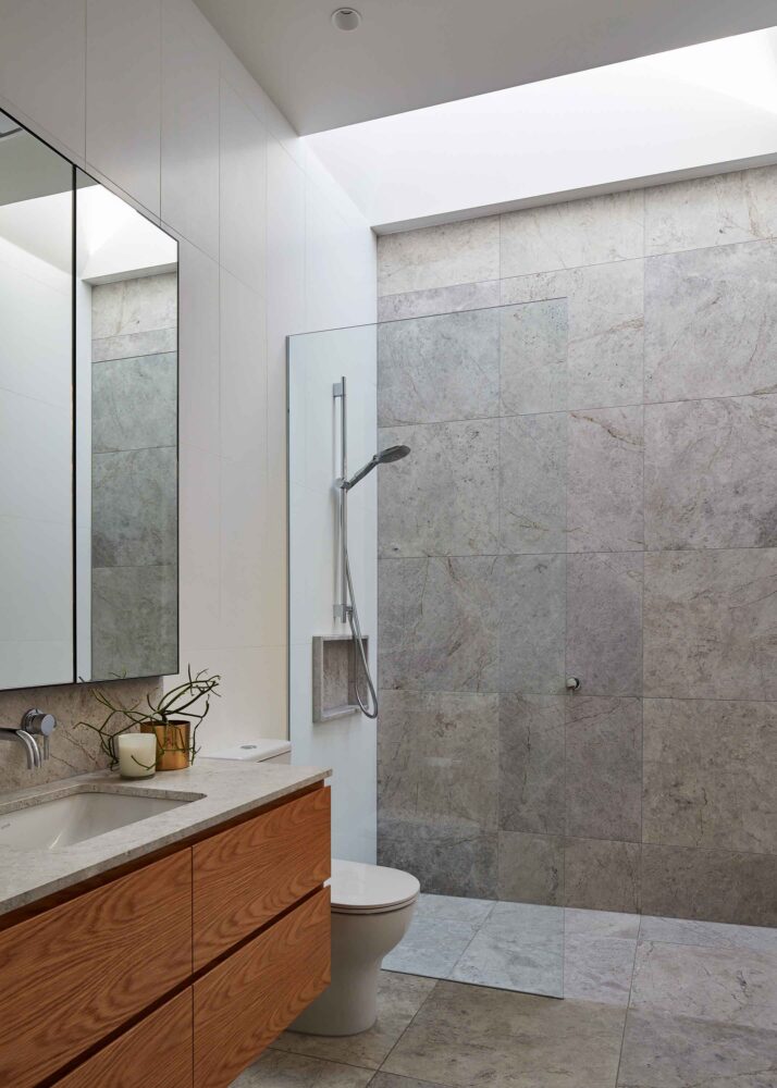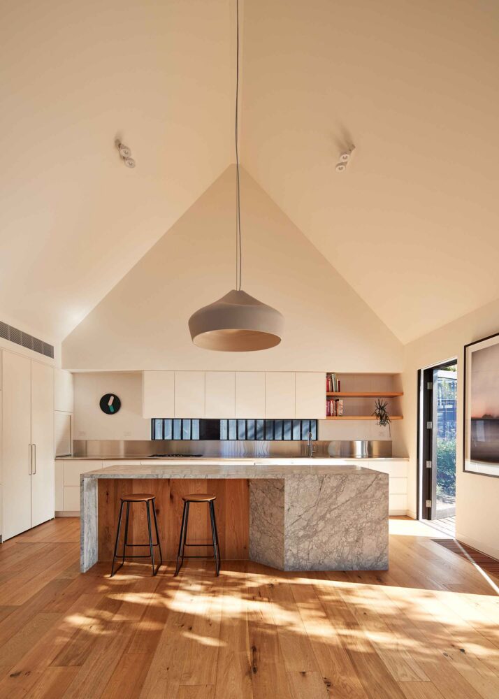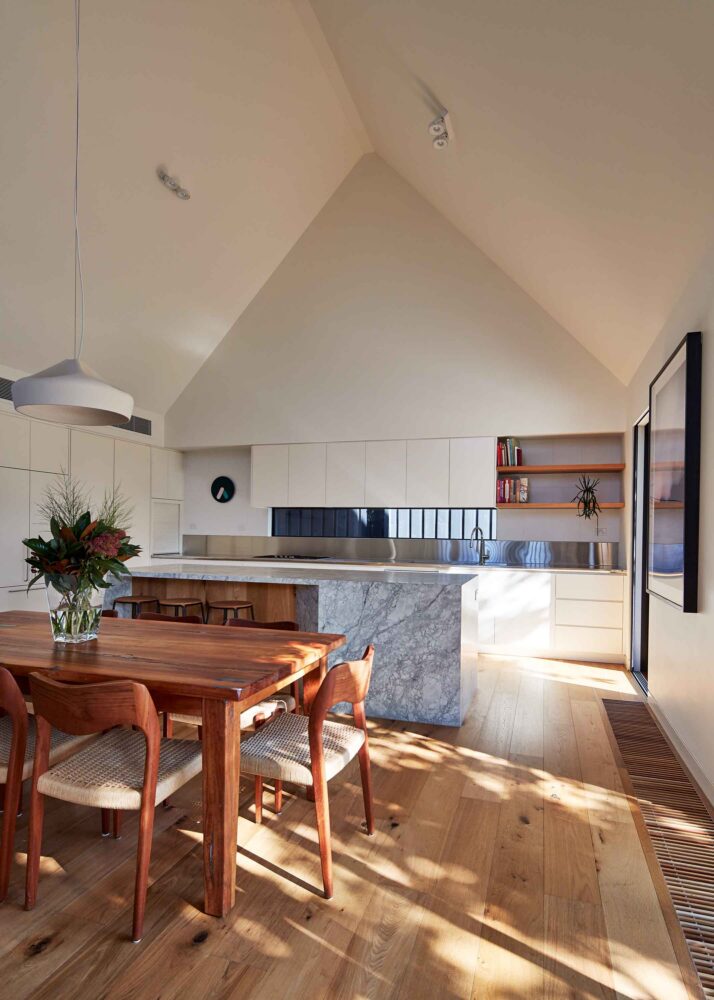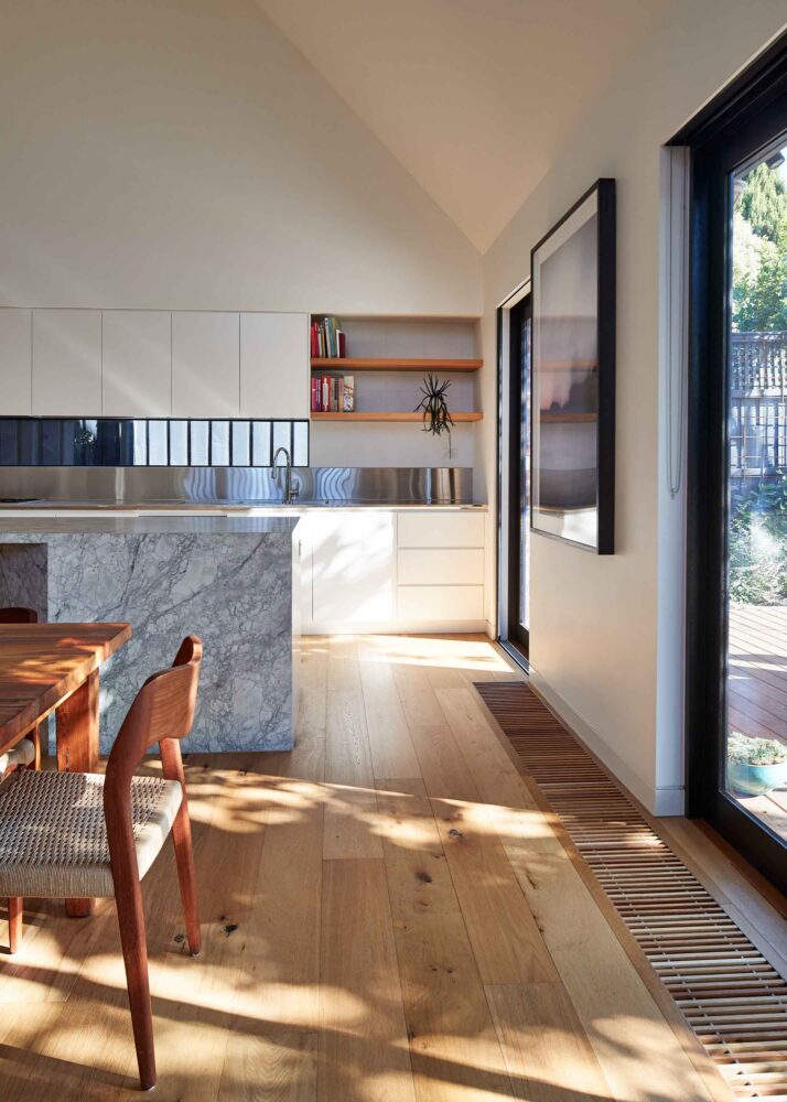 All new windows and glass doors were custom-made in Tasmanian oak sourced using renewable timbers. The use of beautiful and durable natural materials that will gain a patina over time, combined with a high quality to all detailing, ensures this home is built to last and withstand the test of time.